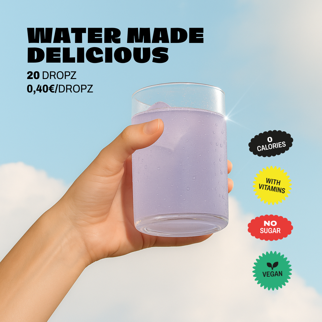 One Dropz is enough for 250–500 ml of water — depending on how intense you want the taste to be.
