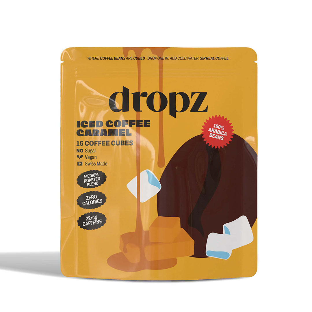 Iced Coffee Cubes sind Würfel aus echtem gebrühten Kaffee, Schock gefroren, um Aroma und Koffein zu bewahren. Einen dropz Cube ins Glas geben, kaltes Wasser darauf giessen, trinken, geniessen. Wie du es magst: pur, mit Hafermilch oder auf Eis.