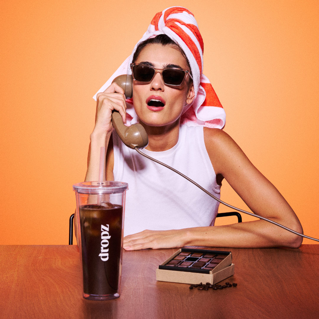 Iced Coffee Cubes sind Würfel aus echtem gebrühten Kaffee, Schock gefroren, um Aroma und Koffein zu bewahren. Einen dropz Cube ins Glas geben, kaltes Wasser darauf giessen, trinken, geniessen. Wie du es magst: pur, mit Hafermilch oder auf Eis.